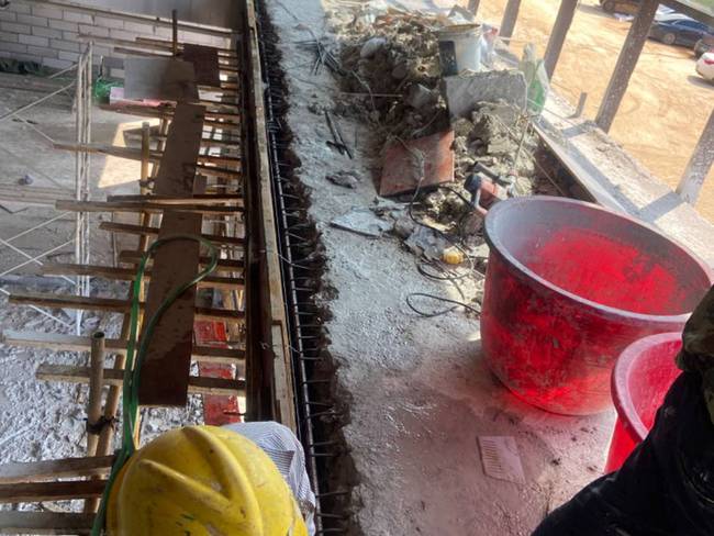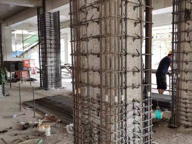 4.加固梁柱:根據(jù)設(shè)計(jì)方案,對(duì)梁柱進(jìn)行增大截面加固。這一步一般包括拆除原有部分混凝土、增加新的混凝土、增加加固鋼筋等工作。